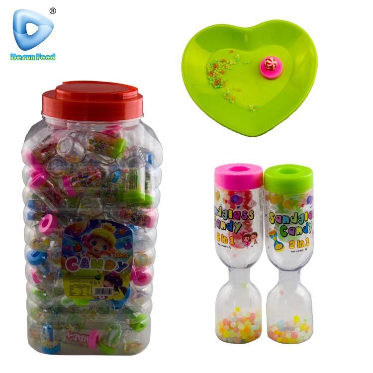 Hot Selling Colorful Sweet Fruit Flavor Hourglass Toy Hard Candy with Mini Candy