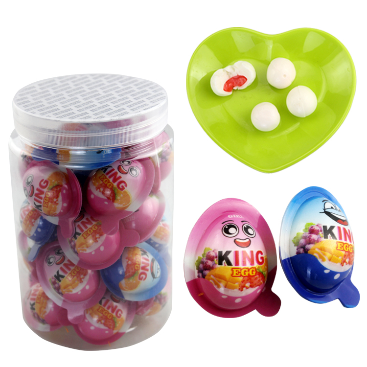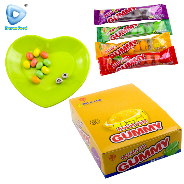 Wholesale Custom Cute Egg Shape Fruit Flavor Filled Jam Soft Gummy Candy