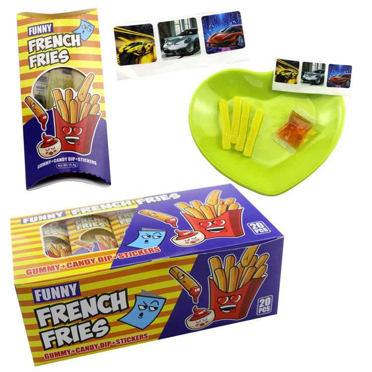 Hot Selling Delicious Fruit Flavour Sweet Fries Shape Gummy Soft Candy and Fruit Jam Candy with Card