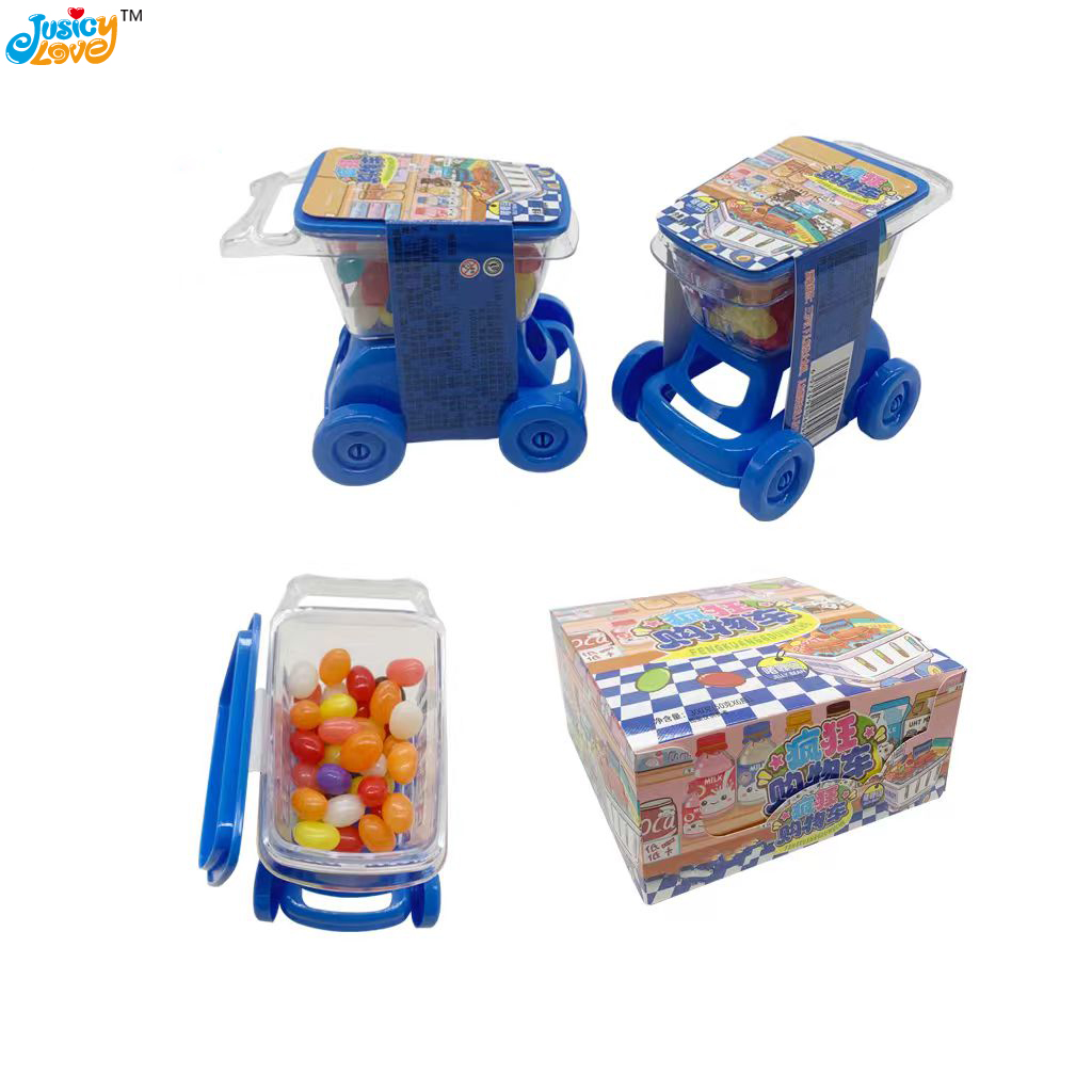 Hot Selling Plastic Shopping Trolley Toy with Sweet Fruit Flavor Jelly Bean Candy for Kids