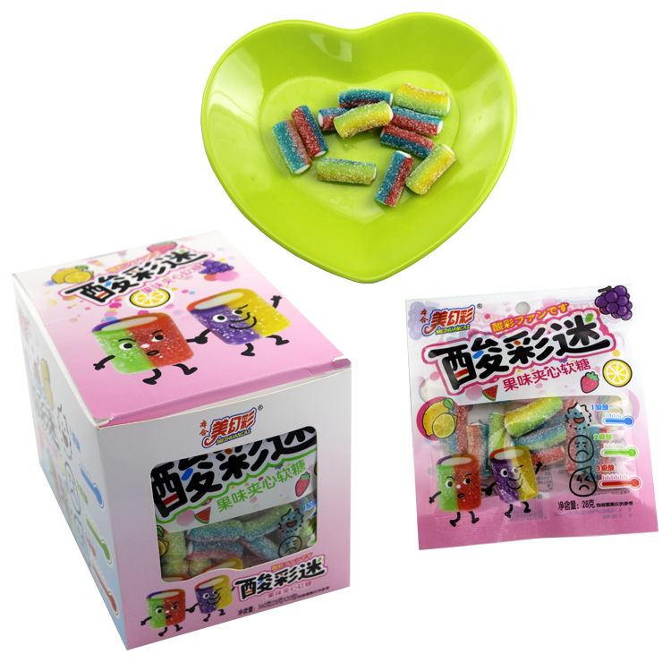 Hot Selling Colorful Fruit Flavor Sour Jam Filling Chewy Gummy Soft Candy
